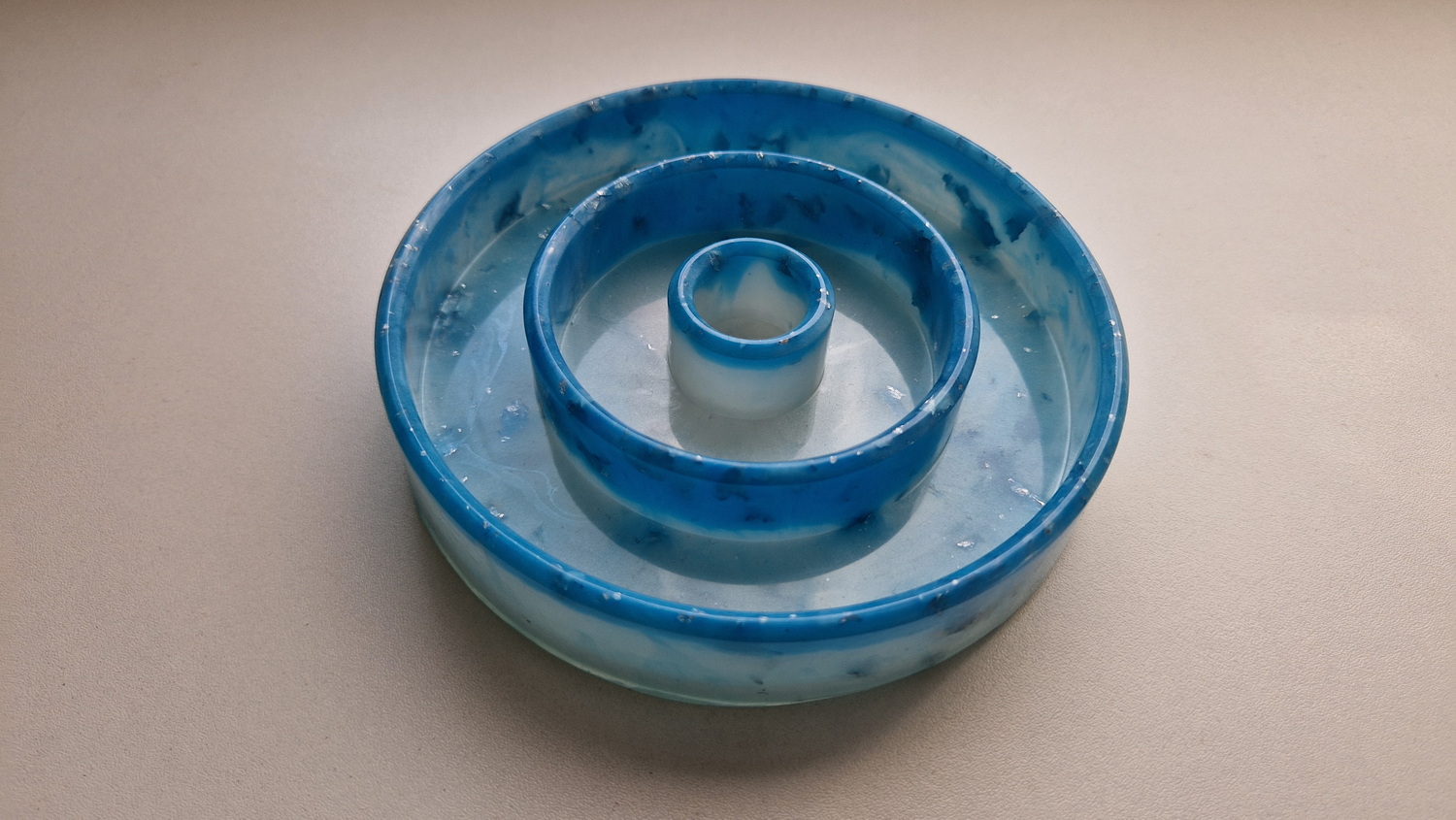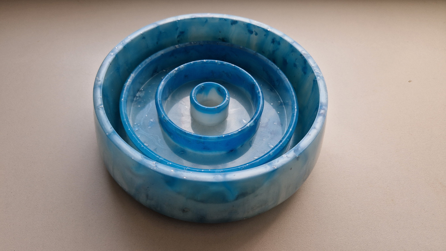 Verwöhnen Sie Ihren vierbeinigen Freund mit diesem einzigartigen, handgefertigten Näpfen, der nicht nur praktisch sondern auch ein echter Hingucker ist. Die Näpfe sind aus hochwertigem Epoxidharz gefertigt und bestechen durch die mehrfarbige Optik. Das BPA freie Material stellt eine gesunde Alternative zu herkömmlichem Kunststoff dar. Mit seiner robusten Beschaffenheit versprechen dieser Näpfe Langlebigkeit und leichtes Reinigen. Der Antischlingeinsatz nimmt 200ml vom Fassungsvermögen ein.
